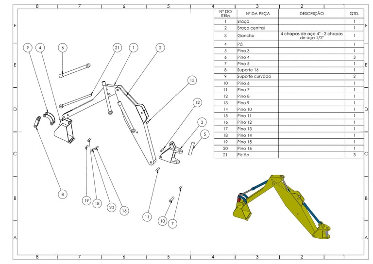 Modelagem 3D, detalhamentos 2D e desenvolvimento de máquinas e equipamentos.